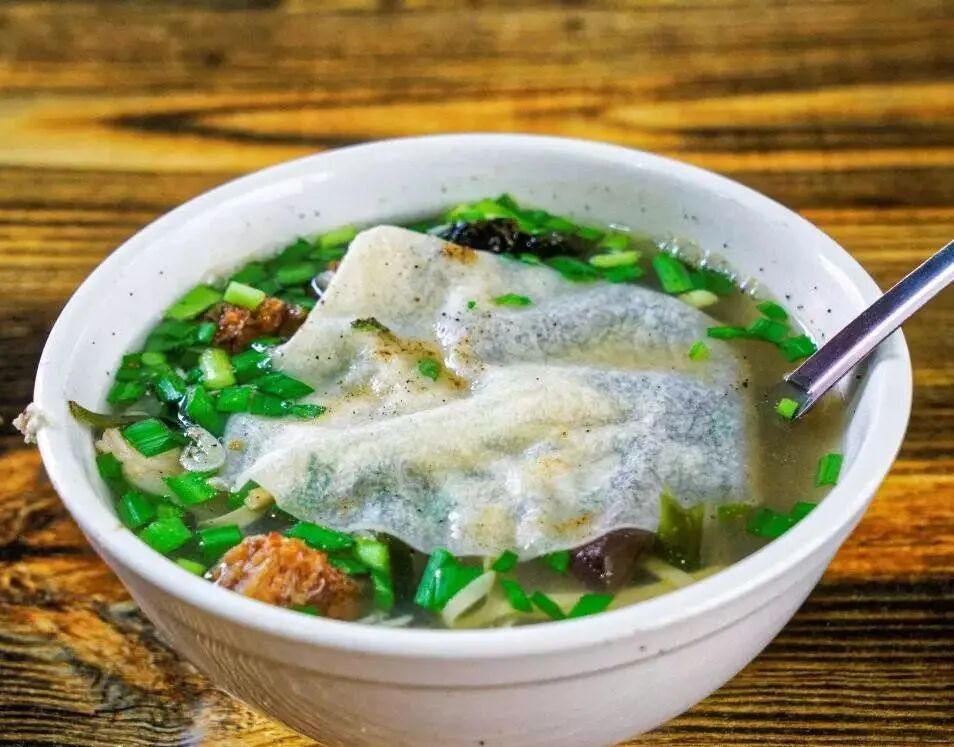 不翻汤,不翻指的是鸡蛋、绿豆粉混合摊出的饼,因“不用翻面就能熟”而得名