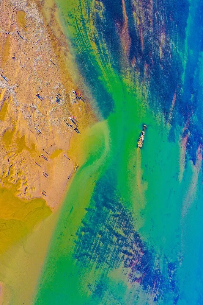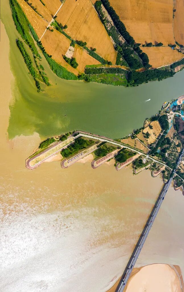 孟津黄河湿地公园,河水冲刷后的河床,色彩斑斓