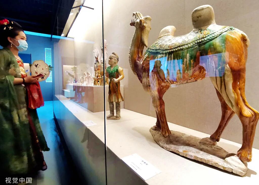 洛阳博物馆展出的唐三彩胡人牵骆驼俑