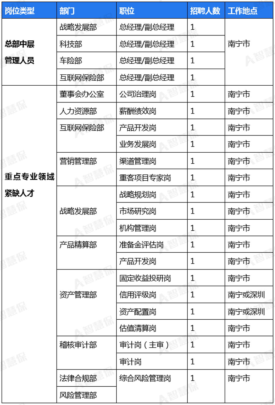 北部湾财险在公司官微的招聘信息中表示,为适应公司高质量发展的需要,现面向社会各界公开选聘管理人才和重点专业领域紧缺人才,诚邀有志之士加盟。