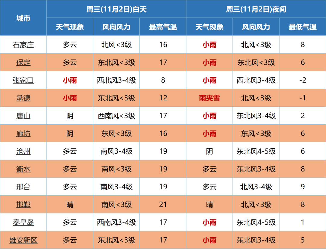 明天夜间到2日白天,张家口、承德、保定西部阴有小雨转雨夹雪,其中张家口北部、承德北部有雨夹雪或小雪,其他地区晴转多云。