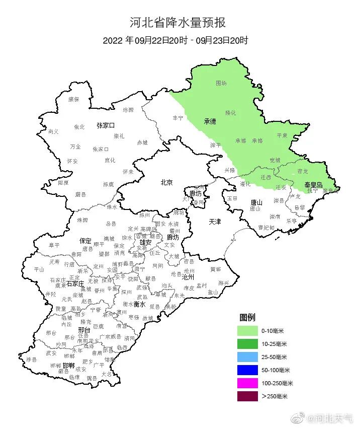 明天白天,全省晴间多云。最高气温,张家口、承德、保定西北部13~22℃,其他地区23~25℃。