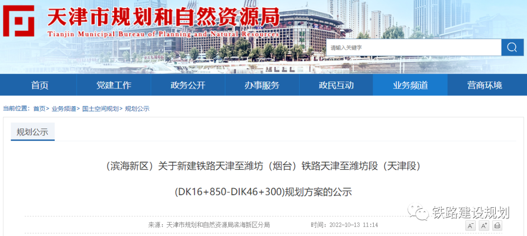 今年1月,国家发改委正式发文,批复新建天津至潍坊高速铁路可行性研究报告,标志着项目正式立项;今年9月,项目初步设计获国家铁路集团与天津市、河北省和山东省政府联合批复,项目进入实质性实施阶段。