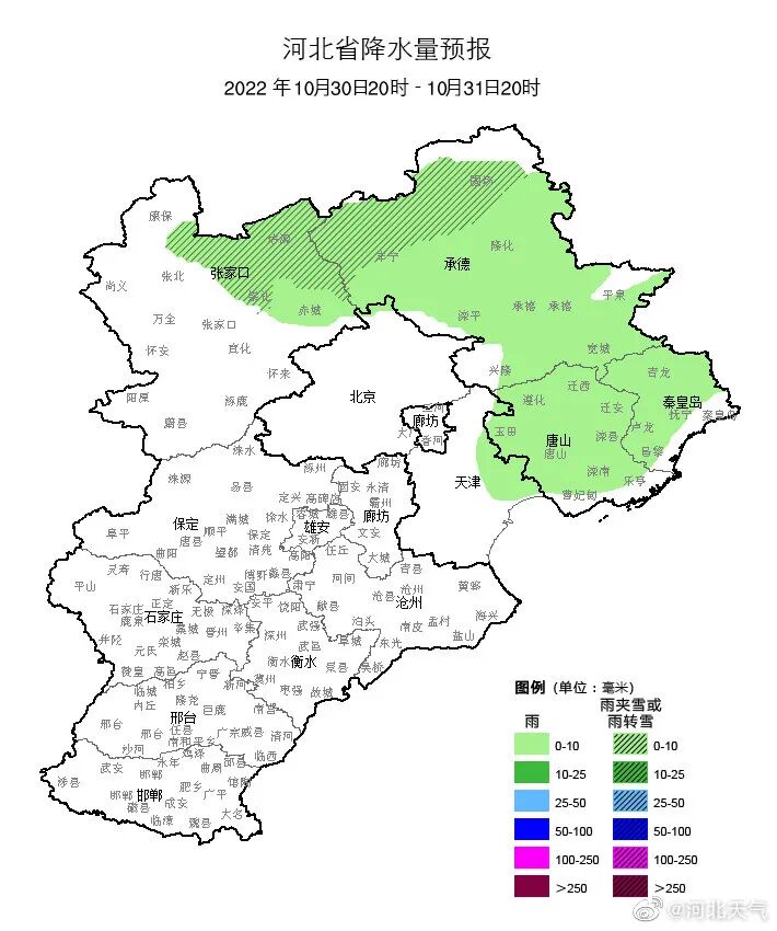 明天夜间到30日,全省阴,其中张家口、承德、保定北部、秦皇岛北部有小雨或零星小雨。