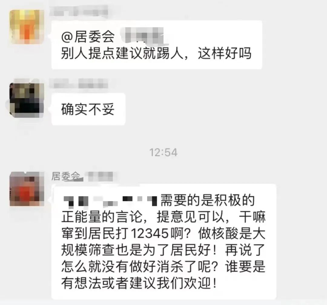 已经把”意见居民“踢掉。因为“群里不需要负能量的人!”