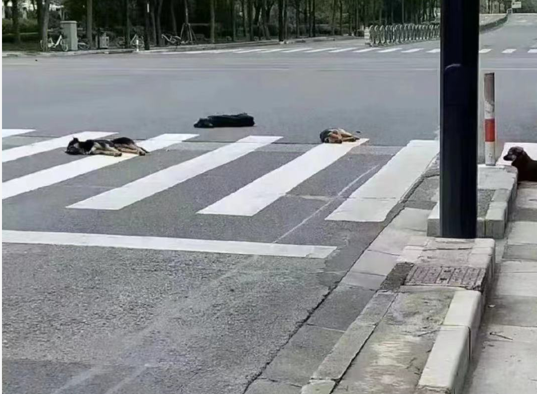 几只小狗则直接趴在街道上。