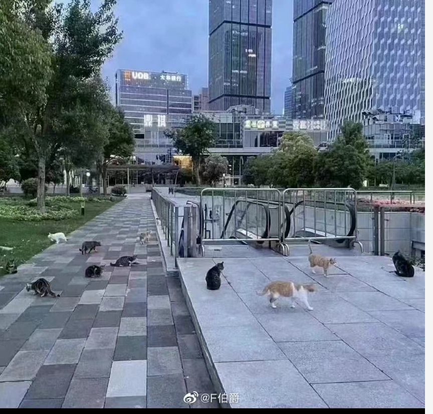 这就是当下上海、北京这些大城市的一些现状,普通人们在排队做着核检,过着被隔离的生活,往昔繁华热闹的地铁站和街道已然是人影全无,一片静悄悄的,于是便成为了小猫小狗们的乐园。