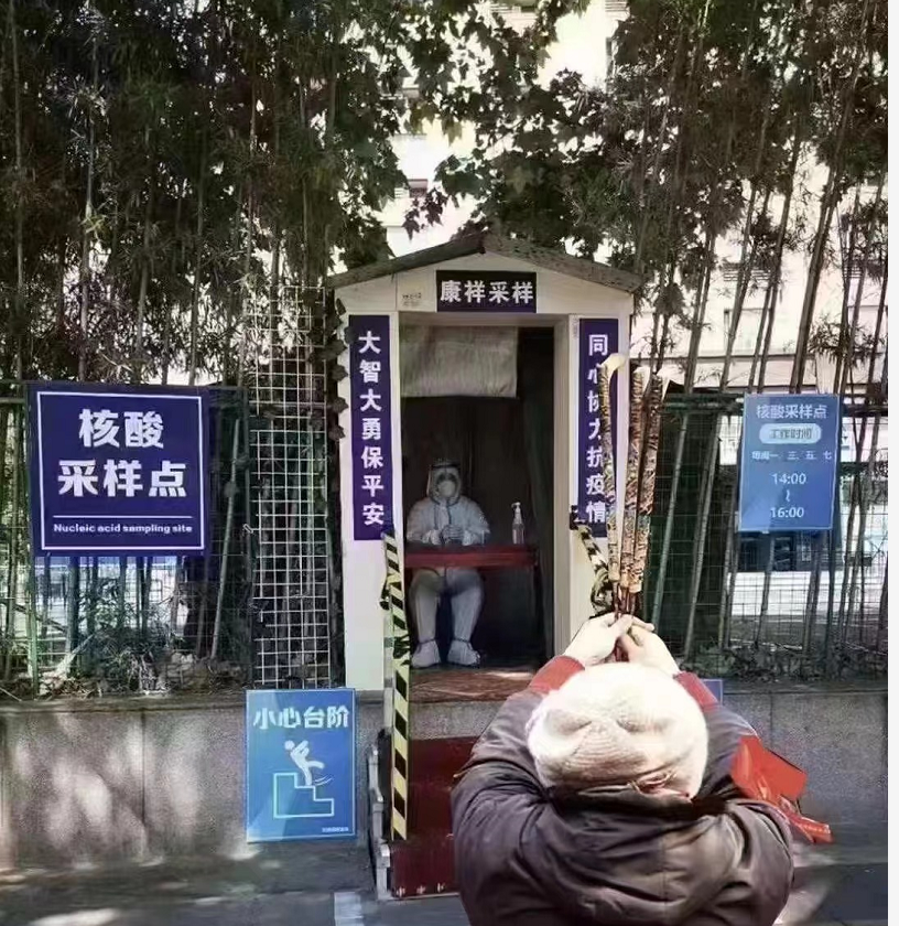 更不令人乐观的是,现在各大城市已经出现了核检小屋,有居民真的手拿三柱香在拜它。