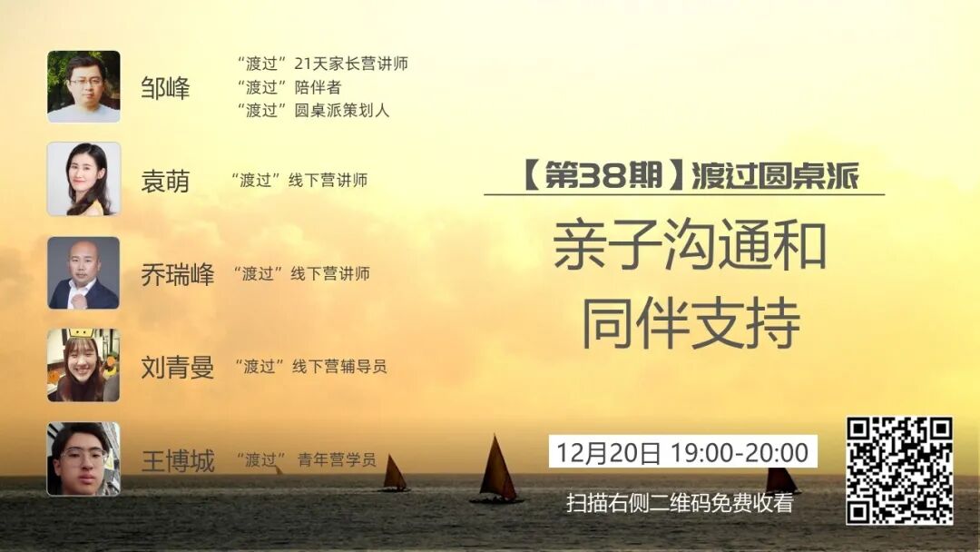 本期圆桌派,我们请来渡过线下营讲师袁萌,乔瑞峰,渡过成长营辅导员青曼,还有一个青年营学员王博城,一起聊聊相关的话题。