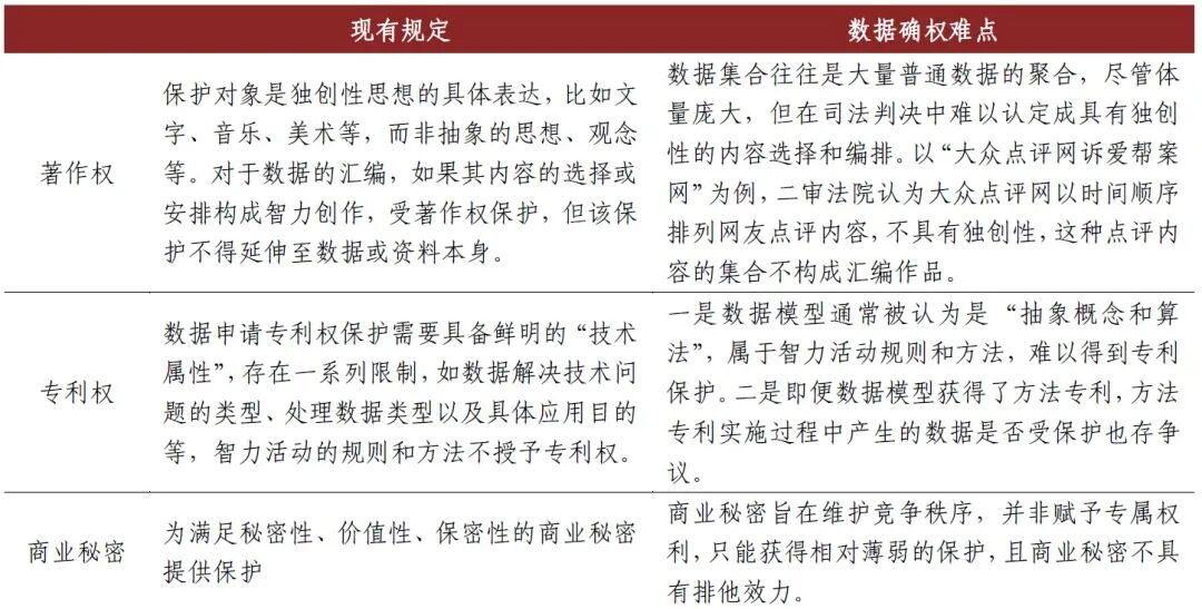 图表1:现有知识产权保护框架难以完全覆盖数据确权问题[9]