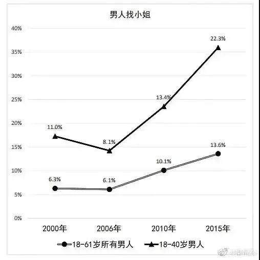 最后,补一个数据:“2015年,人民大学社会学教授,中国性学第一人潘绥铭做出判断,18到40岁的主力人群嫖娼率是22.3%。也就是说,每10人中,就有2.2个人嫖过。2021年,这个数字再次增加,达到了25%,也就是说,每4个人中,就有1人嫖过。”