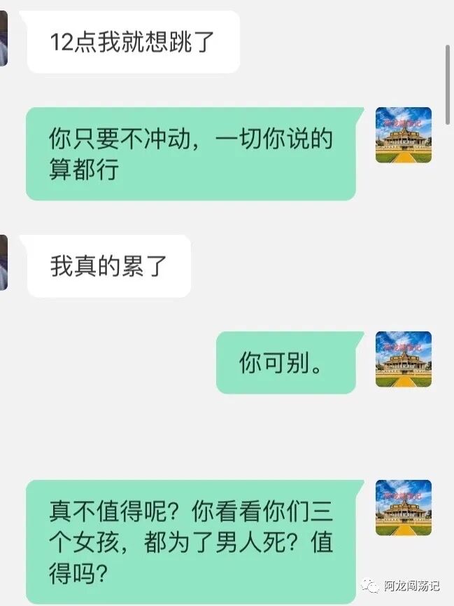 昨天晚上发文前,后台收到一位中国女孩留言,她说,她要跳楼……