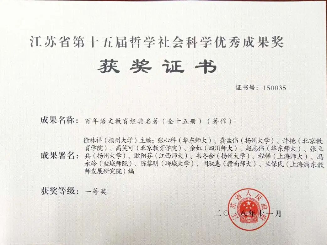 近年来,依托江苏高校优势学科和江苏高校品牌专业两大平台,逐步形成了“雅俗结合,顶天立地”的科研格局,多元化的学术研究为教学改革和课程开发打下了坚实基础。《文学概论》《中学语文课程标准与教材研究》入选国家级精品资源共享课,其中《文学概论》为国家精品课程、教育部首批国家级精品资源共享课。《中学语文课程标准与教材研究》入选国家精品在线开放课程、国家级一流本科课程。《中国古代文学》为省级精品课程,《中国现当代文学》《语文教育学》《外国文学》《古代汉语》等课程为省级一类优秀课程。教材《文学理论》为“十一五”国家规划教材、中国大学资源共享课配套教材,《秘书写作》为“十二五”普通高等教育本科国家级规划教材、“十三五”江苏省高等学校重点教材,《小学语文课程与教学论》为“十二五”职业教育国家规划教材,《语文教学技能全程训练新编》为“十二五”江苏省高等学校重点教材,《文本写作教程》为“十三五”江苏省高等学校重点教材。《中国古典文学鉴赏导论》、《<左传>导读》、《中国非物质文化遗产概论》均为江苏省高等学校重点教材。中国古代文学学科梯队为江苏省优秀学科梯队。