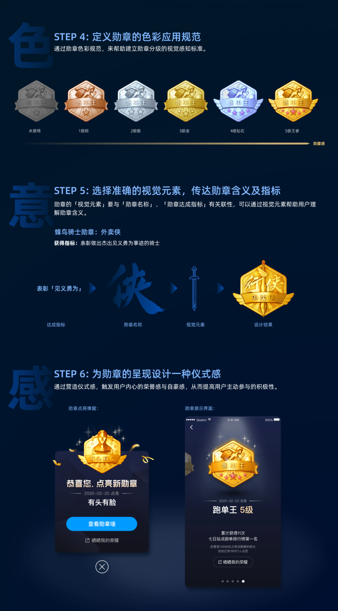 搭建流畅的勋章交互机制,对于实现骑士个体间的分享认可、持续参与、预期满足极为重要。