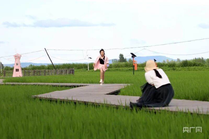 稻田木栈道吸引不少游客来此打卡,亲近自然(央广网记者 马俊玮 摄)