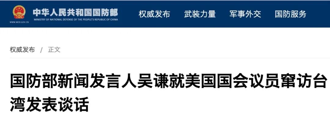 今天(15日),国防部新闻发言人吴谦就美国国会议员窜访台湾发表谈话。