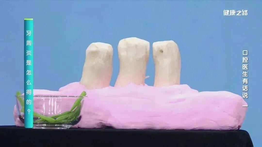 细菌在牙齿周围积聚,这时人体会产生杀灭细菌的免疫反应,造成牙周组织的破坏,牙槽骨会吸收下降,牙龈也会退缩,于是会出现牙龈出血、牙缝变大、牙齿松动的情况,这就是牙周炎。