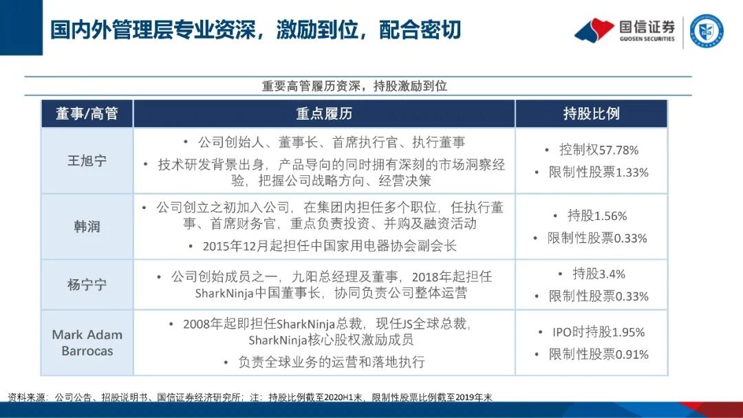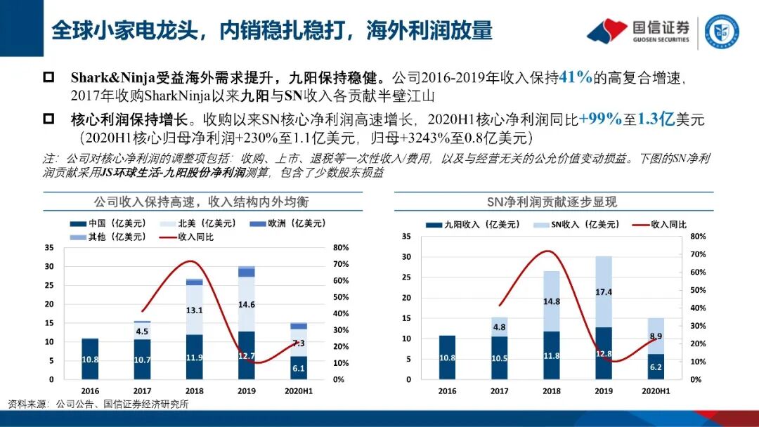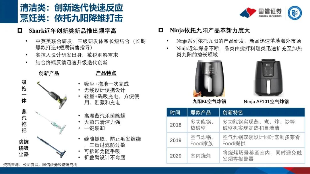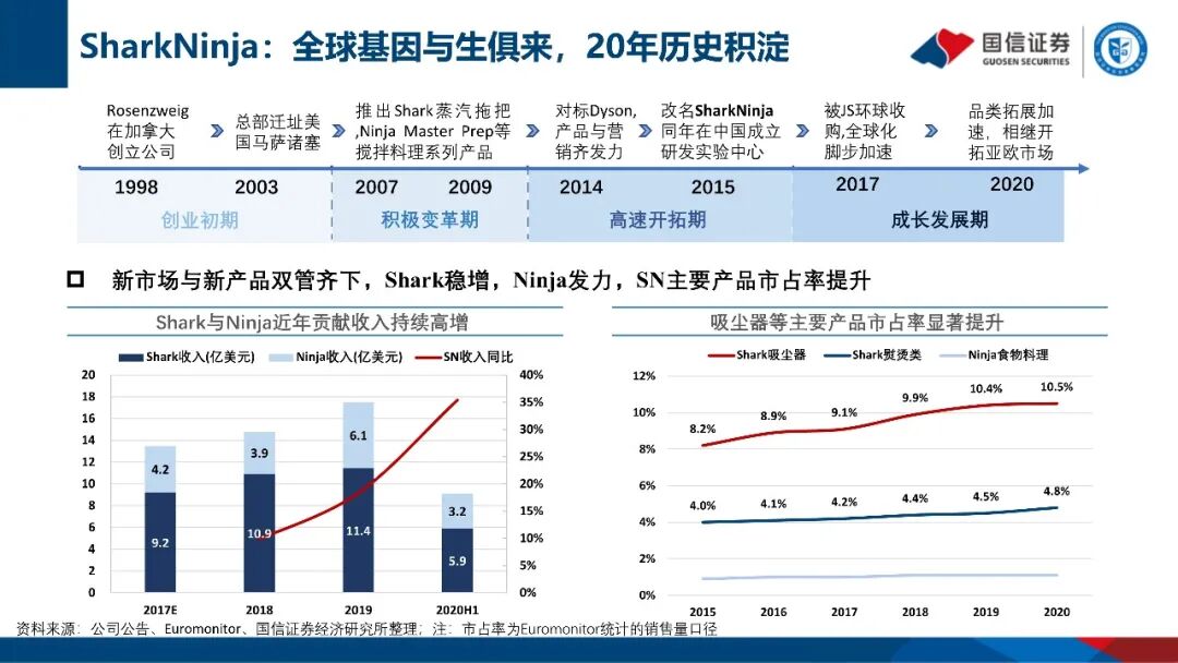 公司成立于1994年,是全球优质小家电领导企业。旗下拥有九阳、Shark及Ninja等三个优质品牌。九阳分部主营豆浆机、破壁机、营养煲为主的健康厨房小家电,Shark主要产品包括吸尘器、硬地板清洁剂和服装护理产品等,Ninja业务集中于西式厨房电器。
