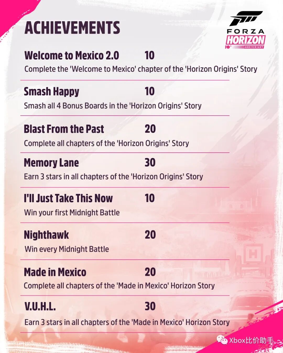 在整个《地平线》10 周年纪念日期间,官方重新启用了在墨西哥为农历新年、Horizon Rush Takeover 和 Rami 的赛车历史设置的临时公关特技,玩家可以再次前去挑战,留下自己最好的成绩。