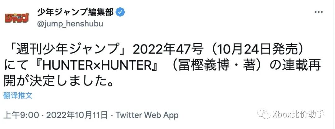 富坚义博漫画《全职猎人》将在在10月24日发售的《周刊少年 Jump》2022年47号刊上恢复连载。