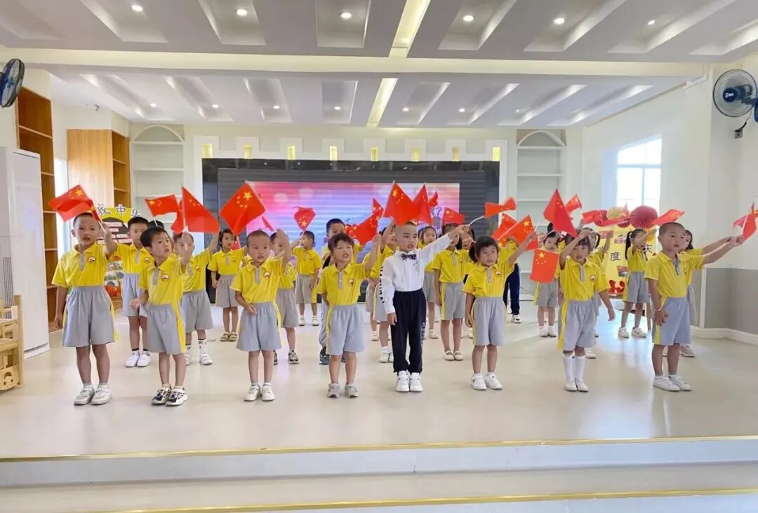 在新中国成立七十三周年之际,为弘扬爱国主义精神,激发师幼爱国热枕,表达对祖国的祝福,大阿镇幼儿园开展了“我爱你,中国”系列活动。五星红旗下,一面面舞动的小国旗,一张张幸福的笑脸,深情表达了对伟大祖国的无比崇敬和热爱之情。红旗飘扬,信念坚定,未来可期。(供稿:洪佳玲)