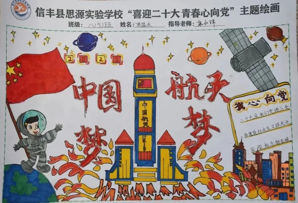 金色九月,秋风送爽。在中华人民共和国成立73周年之际,信丰九小开展了以“喜迎二十大,向国旗敬礼”系列主题活动。活动以我和国旗合个影、嘹亮歌声献给党、经典诵读壮我心、画笔传情绘祝福、童真美文颂祖国、动手劳动,爱家爱国等形式展开,通过活动激发了全校师生的爱国热情,传递了建设祖国、奉献祖国的赤子之情。(供稿人:徐倩倩)
