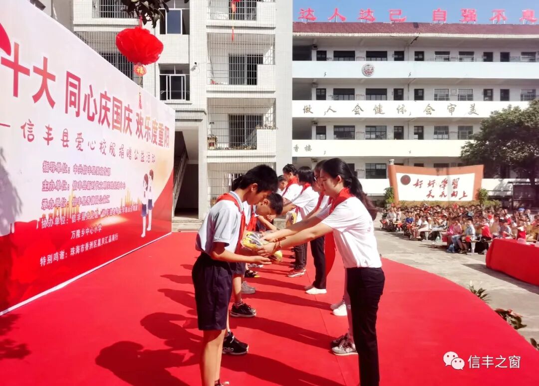 “此生无悔入华夏,来世还做中国人,我骄傲,我是中国人……”9月30日,掷地有声地朗诵响彻在万隆乡中心小学校园,原来一场爱心校服捐赠公益活动在这里举行。在国庆、重阳“双节”到来之际,来自信丰县秀德园公益汇的爱心人士、信丰县老年大学南山合唱团的老年朋友与万隆乡中心小学的师生欢聚一堂、歌唱祖国、奉献爱心、播撒希望。(供稿:赵瑛 王珺)