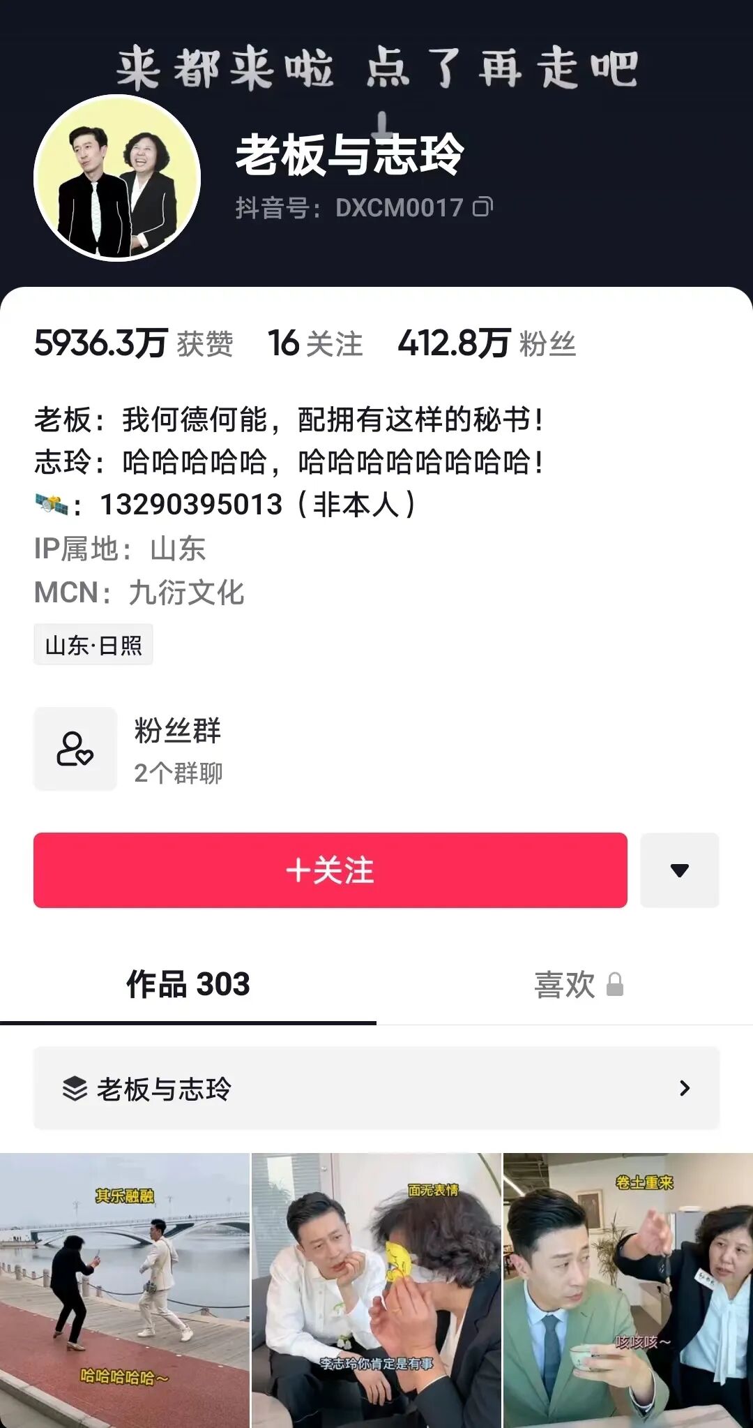 “我们常常会觉得,在表达一些极致情感的时候,还是方言来得更顺,更贴合大众的心理预期。”孙浩茗说,抖音号“老板上班了”粉丝中,山东人占比不足10%;而抖音号“老板与志玲”的粉丝中,山东粉丝占50%以上。其中,日照方言带来的亲切感和贴近性功不可没。“几个账号受众的地域不同、性别不同,为公司形成差异化影响力。”