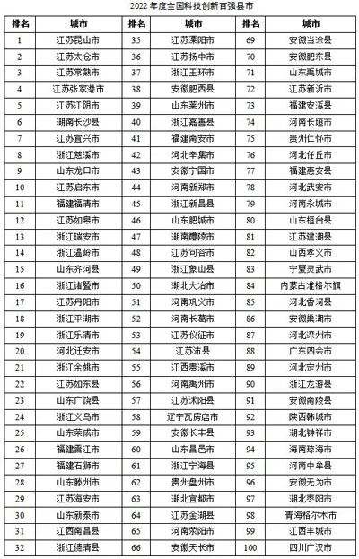 百强县市作为县域经济“火车头”,对引领省(区)县域经济高质量发展具有重要作用。目前,以江苏、浙江和山东为代表的东部沿海地区基本形成了百强县市、千亿县市引领县域经济高质量发展的良好局面。而宁夏灵武市、广西平果市、新疆库尔勒市、云南安宁市、吉林梅河口市、贵州仁怀市等进入全国百强县市对于推动西部、东北地区省域内县域经济发展起到了良好的示范和带动效应,同时对于全国区域协调发展也产生了积极的影响。