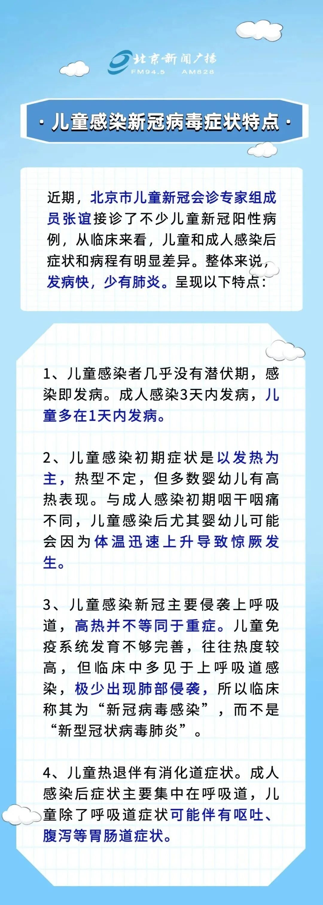 对于大多数既往健康的孩子,感染新冠病毒后的症状和常规呼吸道感染的症状类似,一般只感染上呼吸道,不容易导致肺炎。0-4岁儿童,除了发热、咳嗽,需要注意声音嘶哑、咽喉疼痛等症状。大一些的儿童,发热和呕吐更加突出,呼吸道症状以咳嗽为主,可能伴有咽喉疼痛。