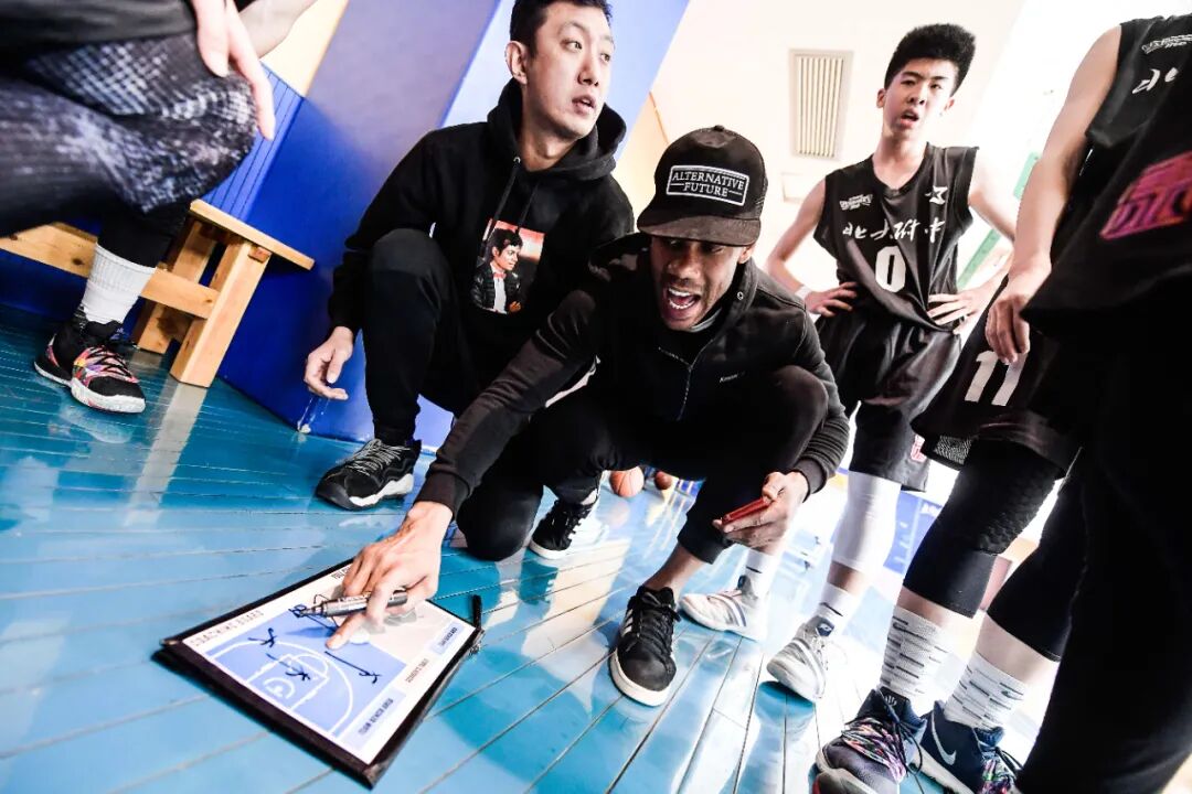 2019年4月20日,北京市海淀区中小学生篮球联赛,球星马布里场边指导北大附中。图源:视觉中国