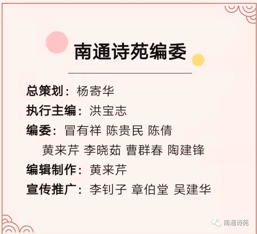 “南通诗苑”是江苏省南通市诗词协会注册的网络公众号平台。宣传推广《南通诗词》作品,鼓励诗协会员以诗词的形式:言志、言情、咏物、记事、抒情,写出融思想性、艺术性、观赏性于一体的作品。欢迎各位诗友踊跃投稿。