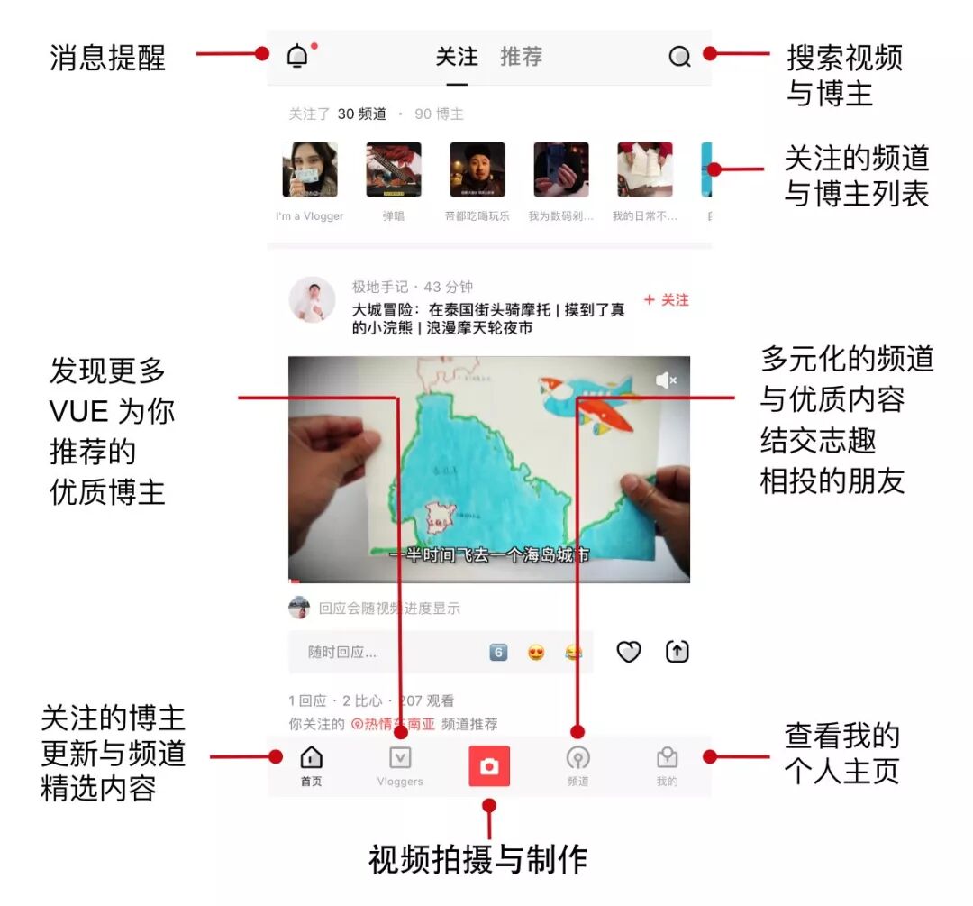 新的VUE Vlog界面,强化了社区属性