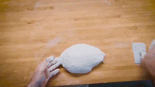 一种能起到解压&锻炼功效的法国百年揉面手法,比较适合延展度高的面团,是除去机打外,唯一能对付的了法粉面团的尚方宝剑。这个手法利用了案面的抓力拉伸面筋,并通过折叠来绷紧面筋,以此来加固锁紧链接继而锤炼出面筋的韧性。这个操作讲究的是巧劲&顺势而为,重点不在于速度或力道,而是拉伸是否做到位。BLF - bench light fold,案折柔情版慢动作甩折法,拓展强度仅次于卷子,更适合延展度高的面团,作用是拓展的同时收紧面团,强固筋性。重点:拉的时候需注意不能超过面团承外力的极限。尤其是法粉面团,因为它本身面筋链接的慢,拉破会烂面,烂面会需要很久才能修复。![]()