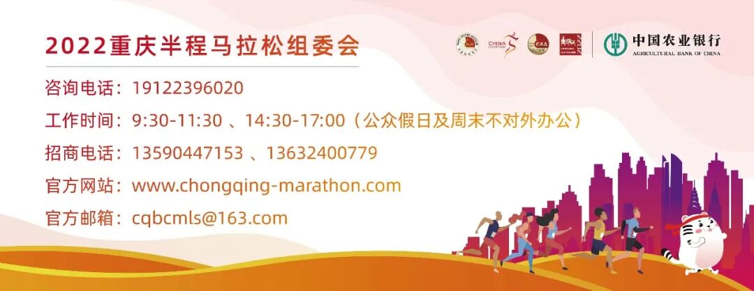 中国农业银行·2022重庆半程马拉松,将于2022年11月13日8:30鸣枪起跑。根据疫情防控相关要求,为保障参赛选手及广大市民的健康安全,确保赛事如期举办,现对赛事规模及参赛要求进行调整,请各位跑友按照要求做好参赛评估,若不能参赛请及时更改参赛计划。