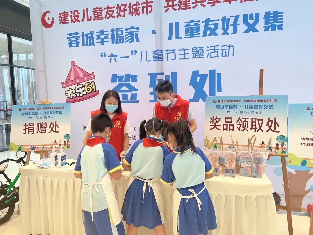 2022年5月26日由成都市妇联主办,新都区妇联承办,区关工委、区教育局、区民政局、区总工会、团区委、区科协、区红十字会、新都街道、新都旭辉Cmall、兴乐路小学、成都公益组织服务园、成都市爱有戏社区发展中心协办的“蓉城幸福家·儿童友好义集”六一儿童节主题活动在新都旭辉广场举行。兴乐路小学学生代表及家长代表齐聚旭辉广场, 将自己家中闲置的书籍、文具、玩具或自己制作的手工艺品等义卖品带到“爱心超市”进行义卖。活动现场热闹非凡,雀跃的欢呼声传遍整个广场。让我们一起去看看吧!