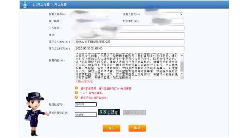 校内的同学对于利用偷拍照片盈利这件事的愤怒也已经达到了极点,认为此事必须交由警方来处理,他应该收到法律的严惩!于是进行了网上报警。