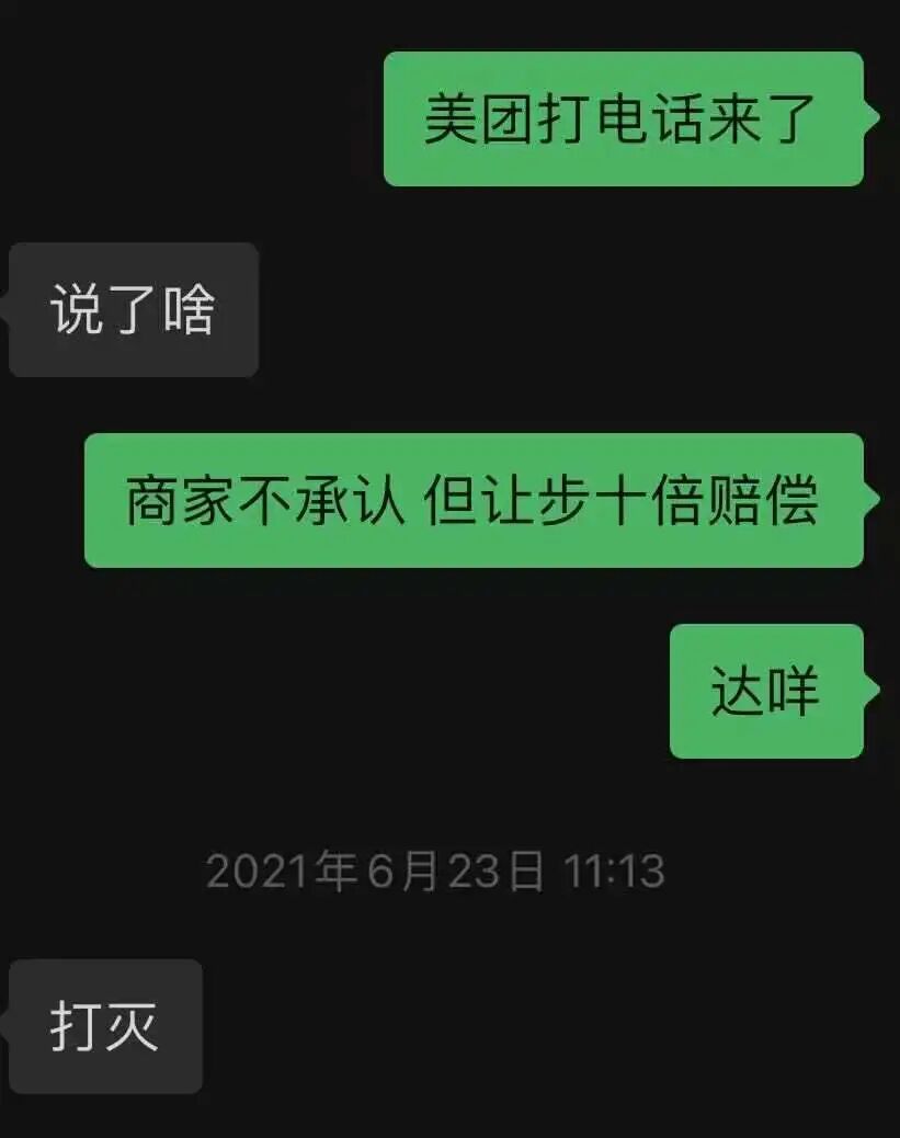 第三天美团专员打电话过来表示平台赔偿100元,