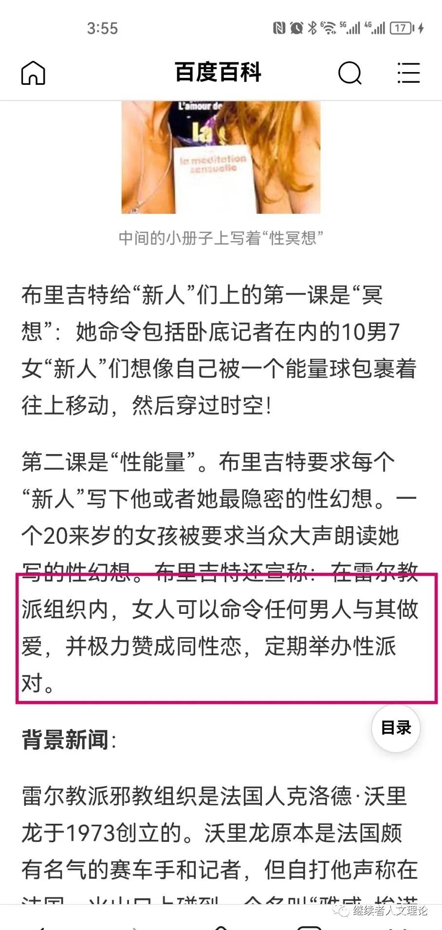 在节目上她显然知道是某宗教的图案。这个宗教宣称支持外星人统治地球,教派经典是《来自外星人的讯息》。很巧,和大s节目里的话又对上了。