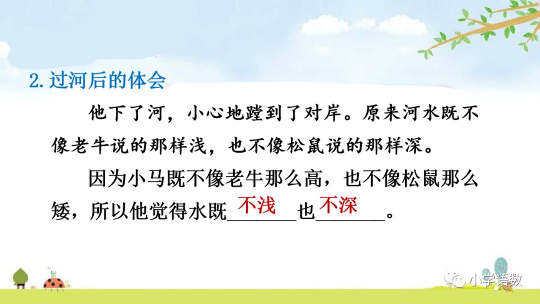 2、同是一条河,为什么老牛和松鼠对河水深浅的判断会截然不同?
