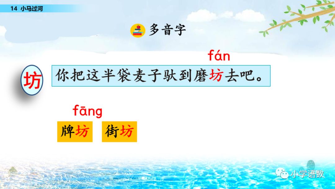 小马要帮妈妈把麦子驮到磨坊去。小马被一条小河挡住了去路,河水哗哗地流着。