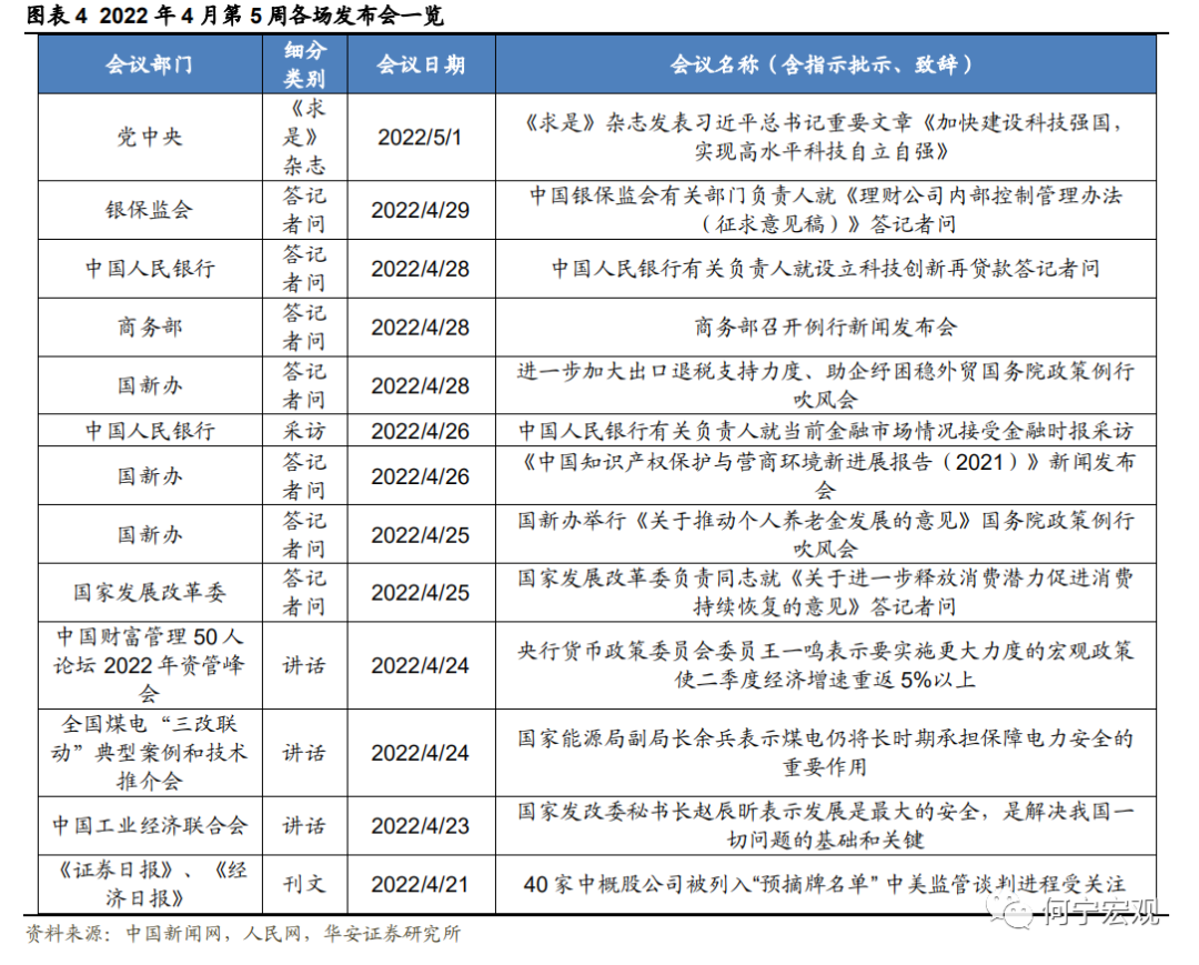 本文内容节选自华安证券研究所已发布报告:《稳中求进,发展是最大的安全——2022年4月第5周政策跟踪》(发布时间:20220501),具体分析内容请详见报告。若因对报告的摘编等产生歧义,应以报告发布当日的完整内容为准。