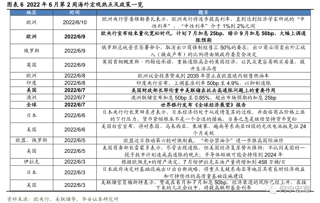 本文内容节选自华安证券研究所已发布报告:《当全球“滞胀”来临——2022年6月第2周政策跟踪》(发布时间:20220612),具体分析内容请详见报告。若因对报告的摘编等产生歧义,应以报告发布当日的完整内容为准。