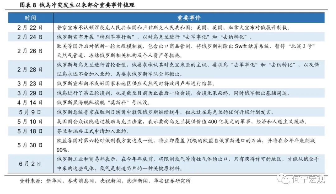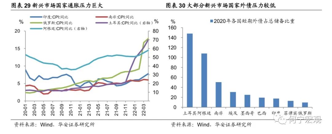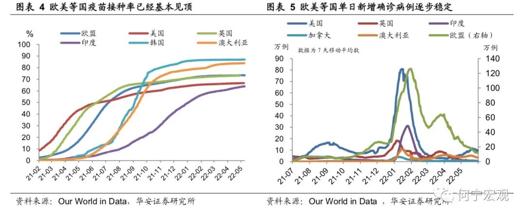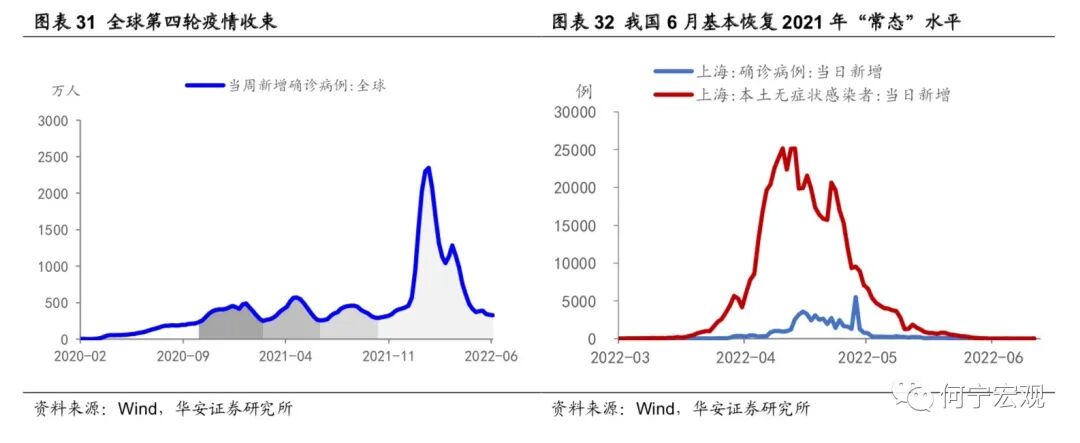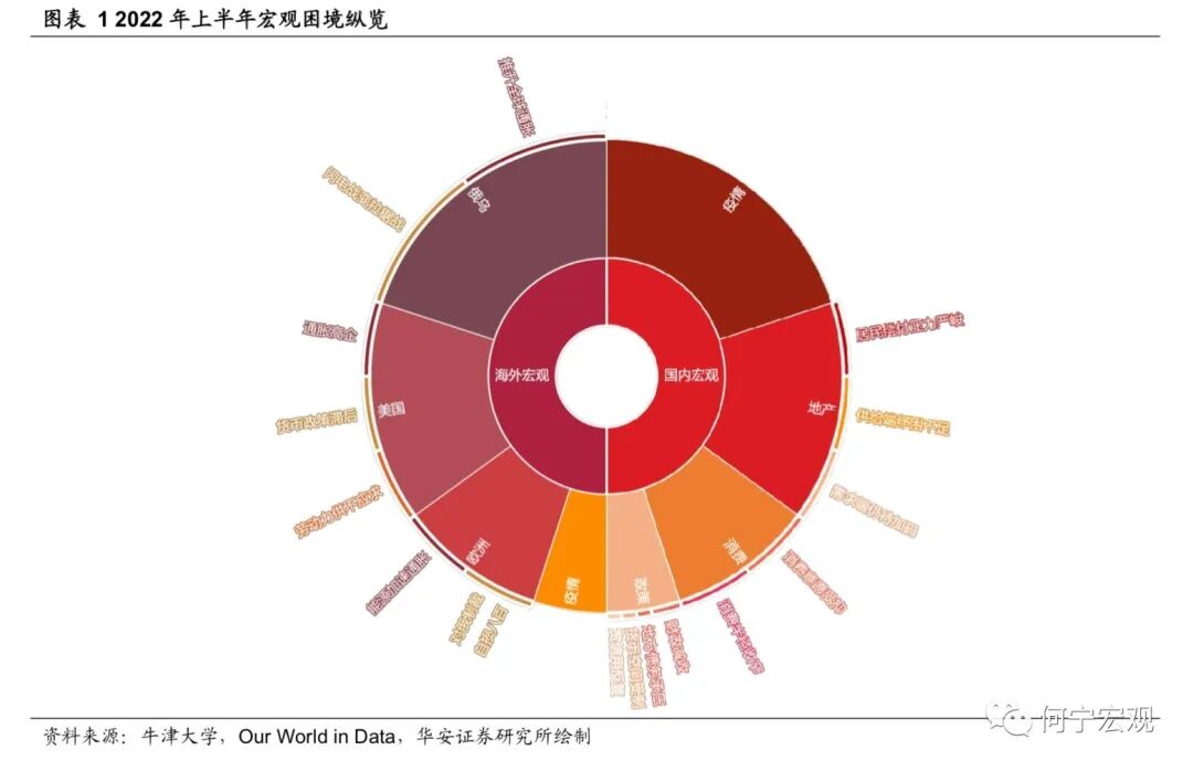 困局之下:宏观经济运行这盘大棋上半年遇到了种种困局,如海外俄乌冲突持续发酵,推高全球通胀,可能将全球推入“滞胀”深渊,“粮食危机”风险蔓延;美国通胀持续超预期,美联储“鹰声嘹亮”,美债利率居高不下,资本市场风险积聚且信心不足;国内看,3月以来疫情“倒春寒”席卷吉林、上海、北京、广东等地,社会经济活动骤然降温,经济下行压力加大;地产市场持续低迷,宽信用过程“一波三折”,警惕“资产负债表式衰退”风险呼声渐长;国内政策超前布局,但在各种制约之下,效果仍待进一步显现。识局者生:4月29日中央经济工作会议指出“新冠肺炎疫情和乌克兰危机导致风险挑战增多”,强调“疫情要防住、经济要稳住、发展要安全”;5月25日《全国稳住经济大盘电视电话会》指出“困难在某些方面和一定程度上比2020年疫情严重冲击时还大”,“发展是解决我国一切问题的基础和关键,努力确保二季度经济实现合理增长和失业率尽快下降,保持经济运行在合理区间”,可谓清晰识局、识局者生。说到“破局”,文中我们借用围棋术语简单比喻各方面破局的可能性,即“本手、俗手、妙手”。所谓本手,指的是遵循规律,守正之道;妙手是出乎意料,出奇制胜;俗手是好高骛远,不利长远。百年未有变局之下,国内外经济政治形势更趋复杂,应对这些局面,有些可能是“假妙手”背后的“真俗手”,例如美联储后悔的“通胀暂时论”和落后通胀的紧缩;之于中国的稳增长之路,可谓“本手之上,妙手未满”。本手、俗手、妙手,并不是绝对的。面对各种硬约束,有时候“本手”是当下最好的选择,例如目前因城施策的地产宽松;欧洲“傻白甜”式地断绝俄罗斯能源供给,看似“俗手”的交换背后,可能是不得已的选择;“内忧外困”之下,中国下半年的稳增长政策能否出“妙手”,我们拭目以待。1.1疫情制约暂时减弱,各国防控逐渐“躺平”,仍要警惕变种风险欧美等海外国家疫情防控思路转向与病毒共存,各国基本放弃了对于国内疫情的严格管控,部分国家已不再强制要求入境隔离。感染病例数也在去年底达到高峰后逐步回落,整体疫情暂时趋于稳定。但目前病毒仍在不断变异,“躺平”式防疫是否能够持续还存在一定的不确定性。1.2地缘政治约束仍在,俄乌冲突迁延日久,全球粮食危机若隐若现目前来看,冲突正在从“闪电战”逐步演变成“拉锯战”,短期局势无法有效缓解。西方国家对俄罗斯的多轮制裁,以及俄罗斯的反制措施,助推了全球能源与粮食价格上涨,其中尤以粮食问题最为迫切,全球粮食供需矛盾益发尖锐,全球粮食危机若隐若现。1.3美国制约仍存:通胀难退、美联储压力更增,中美关系仍存变数,但好在短期美国经济还无衰退风险1)通胀正在变得广泛而坚挺,当前美国通胀上升已经“传染”至几乎所有的生活门类之中。地缘政治风险的延宕使得能源与粮食价格的不确定性大大提高,促使企业有动力进行提价。供应链的修复缓慢以及服务消费的持续恢复,带动核心商品与核心服务通胀短期内“高烧难退”,进而带动美国总体通胀高位徘徊。2)警惕高通胀压力下美联储超预期紧缩风险。在高通胀回落缓慢、劳动力市场火热强劲以及美国面临中期选举的三重压力下,考虑到疫情以及俄乌冲突恶化的可能,需要警惕美联储可能在下半年超预期紧缩的风险。3)美国中期选举之前中美关系、美联储政策仍存不确定性。下半年美国将举行中期选举,从当前的情况来看,民主党面对的局面较为不利。为迎接即将到来的选举,拜登政府一方面在俄乌冲突、中美关系等方面制造话题;另一方面,拜登开始关注通胀问题,美联储除面对通胀压力,还可能面临来自白宫的政治压力。4)美国经济增长逐级而下,但短期暂无衰退风险。一是私人投资大概率将逐步回落,加息之下,地产需求受到压制,叠加财政支出减少,共同拖累美国经济增长;二是居民服务消费不断提升,耐用品的消费也保持一定韧性,对经济增长有一定的支撑,经济增长短期无衰退风险。1.4欧洲面临较大增量风险:欧洲滞胀风险加剧,欧央行紧缩之路进退维谷1)俄乌冲突恶化欧洲通胀前景,滞胀风险加剧。由于俄罗斯是欧洲最大的石油与天然气供应方,冲突发生后对俄罗斯的不断制裁,使得欧洲通胀水平快速上升。受此影响,欧洲居民的收入不断受到侵蚀,企业盈利也受到负面影响,能源进口价格的抬升更是恶化了其贸易账户,经济增长前景更加黯淡。2)欧央行紧缩之路进退维谷。短期来看,由于俄乌冲突仍存变数,欧洲通胀水平预计仍将提升,这促使欧央行采取较为严厉的紧缩政策;但另一方面,经济前景的不乐观和部分国家较高的偿债压力,又给欧央行加息带来较大的阻力,欧央行面临两难抉择,紧缩之路进退维谷。1.5新兴市场存在潜在风险:经济增长放缓,但债务危机或难重现1)新兴市场下半年经济增长将会放缓。当前新兴市场面临外需下滑以及本国快速持续加息的双重压力,经济增长动能明显减弱,考虑到俄乌冲突和疫情尚未结束,下半年的经济增长速度将会进一步放缓。2)但债务危机将不会大规模爆发。除阿根廷与土耳其,大部分新兴市场国家外部债务占比逐步降低,外债偿付储备较为充足,虽然可能面临偿债压力上升,但大规模的债务危机或难重现。2.1疫情之困,稳中有“破”;国内疫情逐渐受控,常态核酸优于封控1)疫情:5月伊始全球范