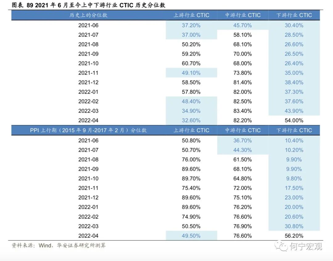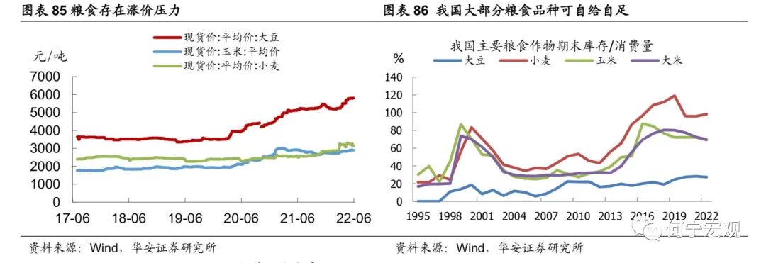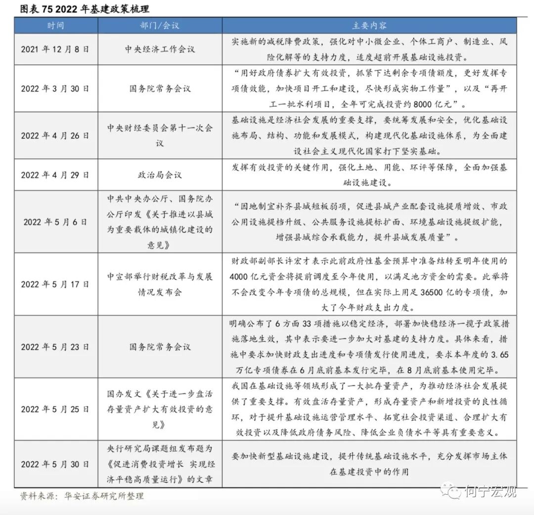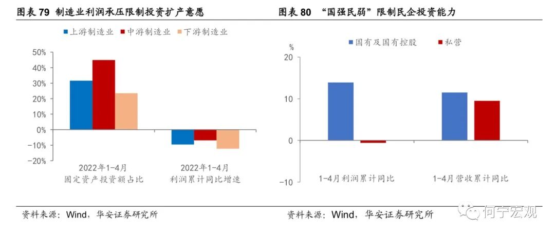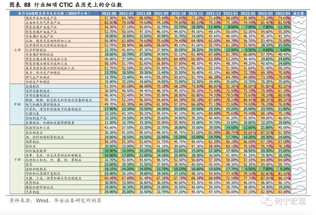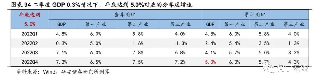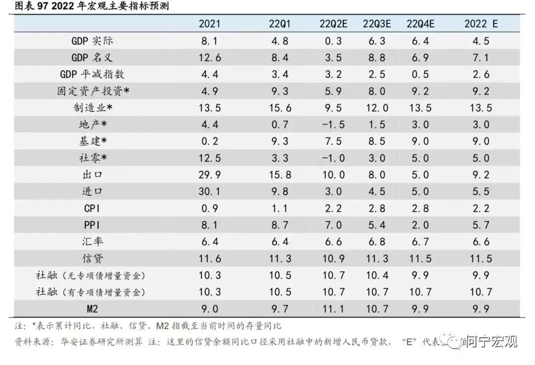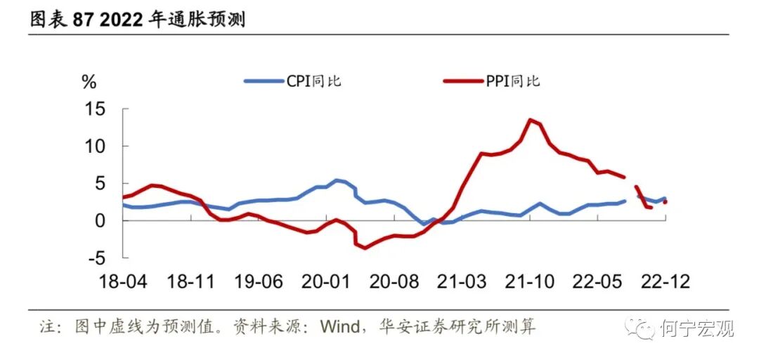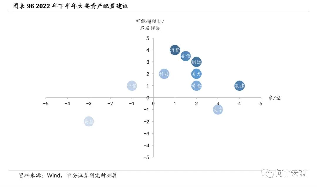 2.6基建掌局,制造业布局,“本手”延续,难言“妙手”,预期差或弱1)基建:布局掌局,无需破局,确定性最强、但预期差最弱。作为稳增长的重要抓手,上半年来基建政策逐渐加码,政策面支撑强劲,下半年基建投资有望继续高增。项目端:截至4月底,26 省重大项目年内计划投资总额为11.2万亿元,可比口径下23省重大项目年内计划投资总额9.71 万亿元,同比增速12.0%。资金端:疫情冲击、大规模减税退税、房企拿地仍谨慎等因素综合作用下,地方财政压力增大,基建高增速与资金来源之间的矛盾可能会逐步暴露。预计下半年专项债可能新增1.5万亿额度、明年提前批1万亿额度,进一步补足地方财源,上调2022年基建增速至[9.0%,10.0%]。2)制造业:预计温和回升,技改支撑“本手”,利润约束“妙手”。利润分化压制企业投资意愿,技改难有亮眼表现,预计全年增速15.2%、三年复合增速为5.0%。技改有成为稳增长重要抓手的潜力,但年内制造业投资走强仍存在两大制约。一是俄乌冲突以来大宗商品通胀持续演绎、阻滞利润传导进程,采矿业大幅蚕食制造业企业利润,进一步削弱制造业投资扩产意愿;二是民企占制造业投资的90%,疫情冲击下“国强民弱”特征进一步显性化,民企投资能否有效修复仍有待数据验证。2.7通胀:关注CPI涨价的投资机会,也需警惕PPI回落偏慢1)下半年关注的物价线索有哪些?猪价下半年将震荡上行;油价仍旧高位震荡;粮食持续涨价,但对我国影响有限;煤炭高位震荡;有色金属价格中枢可能下行,表现分化,铝、锌、锡、镍需求受国内地产修复、基建高增、绿色转型支撑,而铜可能受全球经济下滑拖累更多。2)CPI和PPI可能如何演绎?预计三季度CPI同比可能破3%,全年2%以上;PPI同比回落速度偏慢,全年可能5.7%左右。3)关注结构性涨价和部分行业困境反转机会。与历史比,2022年上游价格传导能力持续下降,下游传导能力持续上升,并在在4月上升至50%以上,中游传导能力上升态势在4月减缓;部分行业价格传导能力持续增强,主要以下游行业为主,可能存在结构性消费涨价机会,可关注卷烟、食品加工、纺服、医药(仅从宏观数据得到的结论,不含行业逻辑)等可能的涨价传导和盈利改善机会。1)今年经济增速在4.5%-5.5%可能是一个较为合理的区间。首先,过去40年,受疫情等特殊事件影响,中国只有两段时间GDP增速低于4.5%,分别是2020年的2.2%和20世纪80年代末90年代初的3.9%-4.2%。其次,稳增长的底线是稳就业,如果以疫后2021年的GDP两年复合增速对应当年的城镇新增就业,那么一个百分点对应250万城镇新增就业,今年城镇新增就业1100万人对应实际GDP增速应在4.4%-5.5%之间。2)经济增速落在4.5%-5.0%区间的概率较大。若以生产法测算为基准,4月、5月数据较差,6月稳步恢复,则二季度GDP同比为0.3%,全年完成4.0%难度不大,完成4.5%以上要付出一定努力,需要Q3和Q4GDP同比在6.3%-6.4%左右。实现5.0%需要Q3和Q4GDP同比在7.1%以上,实现5.5%需要Q3和Q4GDP同比在8.1%以上,需要付出极大努力。我们认为2022年下半年海外大类资产配置顺序如下:短期来看,美元>原油>黄金>美债>美股;再往后,美元>美债>黄金>原油>美股。