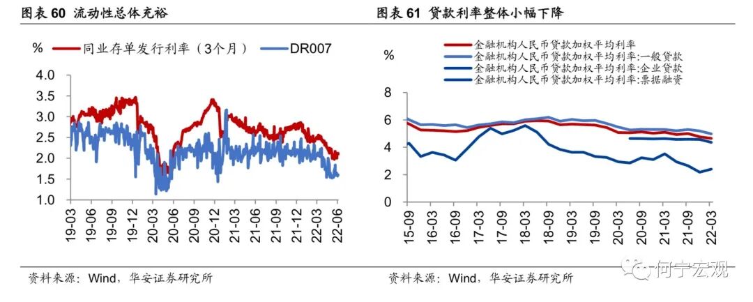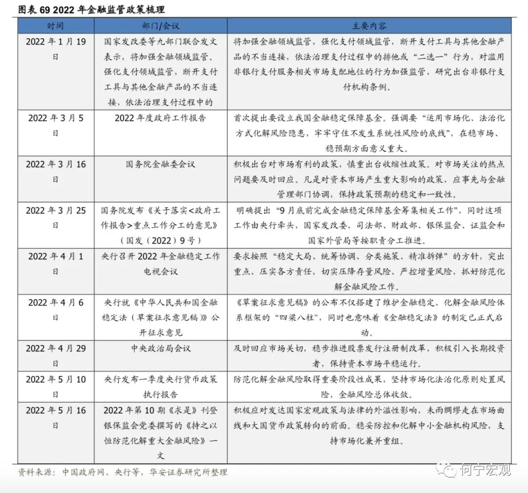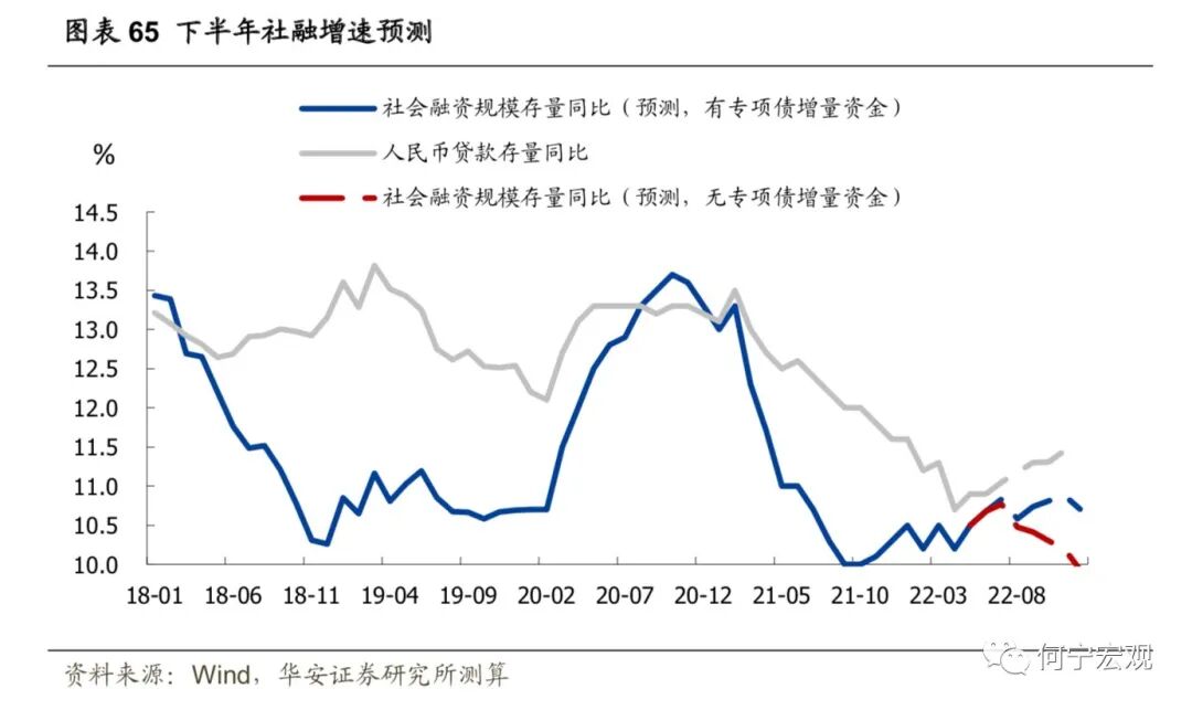 2.4政策之困:稳步破局,本手为基,妙手未满、亦有可期。1)财政增量工具还会有哪些?财政破局可能成为下半年关键因素,本手之上、妙手未满,但亦有可期。受疫情和地产下行等影响,我们测算全年财政收入和政府性基金较计划值或有2.1万亿增量缺口。在此背景下,更多逆周期调节政策有望加码推出。综合流程复杂度和政策可持续性,我们认为,下半年政策使用可能性为专项债存量和提前批>特别国债、存量国债和一般债,总计增量资金或有2-3万亿。此外,加快对财政结余的调度和推动国有资本利润上缴也是可用之策,地方也会陆续发放消费券以刺激消费。2)货币政策方面,央行坚持“稳健的货币政策加大对实体经济的支持力度”总基调,保持流动性“合理充裕”。展望下半年,我们认为货币政策稳中有松,短期结构性工具将成主力,也有望通过压降存款利率的方式压降贷款利率;如果经济仍存压,待美联储鹰派约束解除,国内也有望再降准降息。3)信用能否企稳?居民和企业部门存在资产负债表衰退风险吗?专项债可能成为影响下半年社融走势的重要变量。我们预计,乐观情况下,下半年专项债存量空间和提前批合计2.5万亿左右,由此测算的社融存量增速可能逐渐上行,四季度有望达到10.9%左右。悲观情况下,下半年专项债无增量资金,其他假设不变,由此测算社融存量增速7月达到高点的10.8%左右之后,年底再度回落至10%左右。年内居民贷款两次负增、居民中长贷持续同比少增,企业贷款结构恶化,我们认为总体看,我国目前存在一定的“稳杠杆”风险,但从指标梳理上看,这还是流量层面的风险,即体现在居民偿债比率和企业还本付息率上,受疫情短期冲击、地产阶段性下行影响较大。从杠杆率等存量指标看,还未到资产负债表衰退的程度,在政策积极支持、疫情冲击控制得当的情况下,总体风险可控。4)汇率层面,我们认为人民币汇率短期仍有贬值压力,后续贬值幅度将缩窄或双向浮动。首先,短期美债利率上行与美元升值过程或仍未结束,人民币汇率仍有贬值压力;其次,随着我国疫情受控后复工复产加快,出口和经济阶段性修复回升,人民币贬值压力将得到一定缓解;再往后,出口下行、中美摩擦可能拖累汇率,但中美利差、中外增速差边际好转给汇率带来支撑。此外,央行稳汇率政策储备充足。因此预计下半年人民币汇率贬值幅度下降或变成双向波动。总体看,预计汇率波动区间在6.6-6.9区间范围内。金融监管:守住风险底线,关注金融控股公司监管、金融稳定法、金融稳定保障基金、重点领域风险等。平台经济:由整改向常态化监管转变,并强调支持平台经济,引导其长期健康发展。