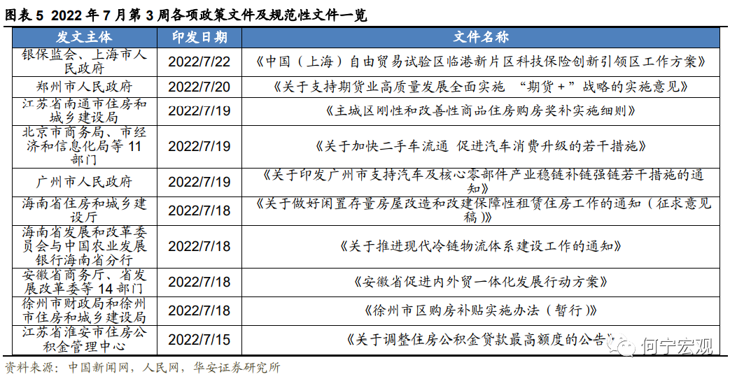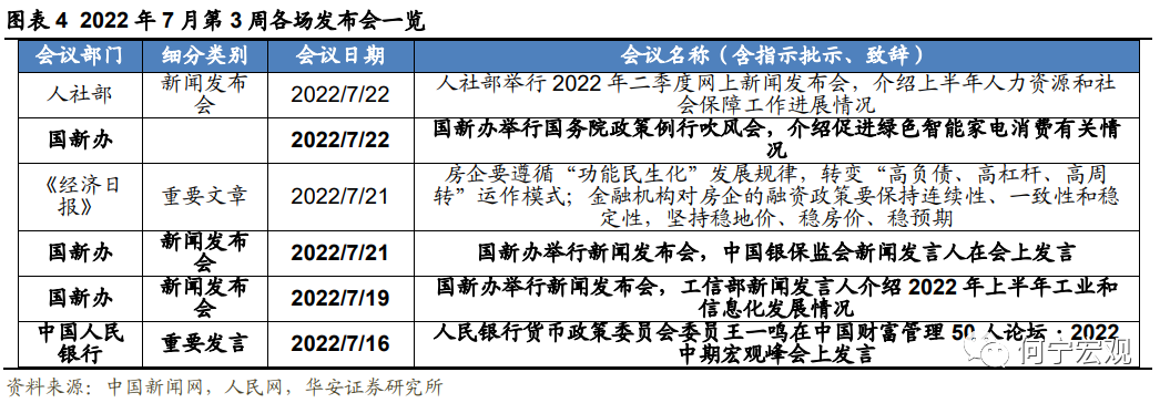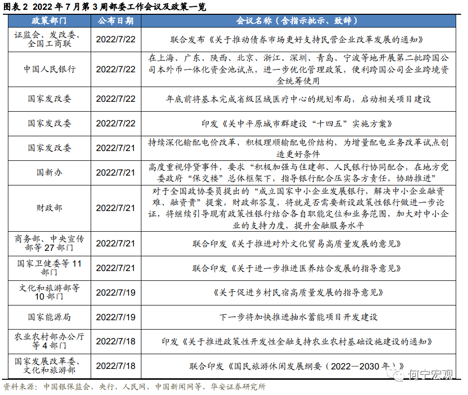 本文内容节选自华安证券研究所已发布报告:《政策注重多方平衡,全年实现经济较好水平——2022年7月第3周政策跟踪》(发布时间:20220724),具体分析内容请详见报告。若因对报告的摘编等产生歧义,应以报告发布当日的完整内容为准。