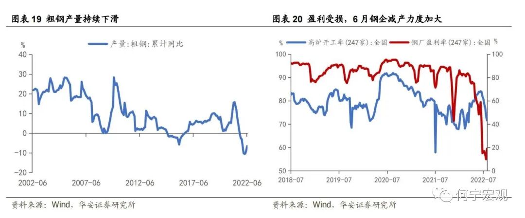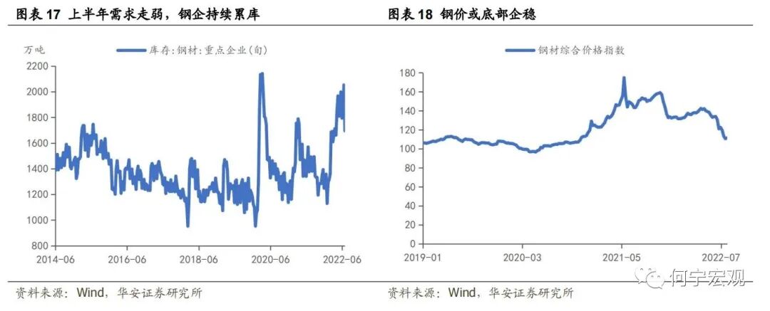 下半年若钢铁业持续压减产能,黑色系价格或回升。压减粗钢产量是落实我国碳达峰碳中和目标任务的重要举措。2021年能耗“双控”持续推进,年中发改委印发各地区“能耗双控”目标完成情况晴雨表,高耗能产业积极落实中央决策部署,其中钢铁行业全年减产3200万吨、较2020年减少2.8%,此举同时抑制了铁矿石价格的飙涨。今年4月29日,发改委强调“巩固好粗钢产量压减成果,目标就是确保实现2022年全国粗钢产量同比下降”。2022年1-6月钢铁业粗钢产量为5.3亿吨、累计同比-6.5%,但二季度疫情冲击叠加地产景气下行拖累需求,钢材价格下行、钢企严重累库,库存水平接近于2020年3月。全国247家钢厂盈利率从3月初的83.6%持续下行至7月下旬的10.0%,利润空间受压缩,政策面压减与行业自发性减产双线并进,据不完全统计,从6月20日起,河北、吉林、宁夏、山西、山东等19个省份的多家钢企宣布检修。7月高炉开工率较6月降低了10.3个百分点至71.6%。目前来看,钢价已底部企稳,最悲观的时点可能已经过去。结合7月29日发改委产业司一级巡视员夏农“下半年严禁新增钢铁产能、继续压减粗钢产量”的表态,下半年黑色系价格或将回升。