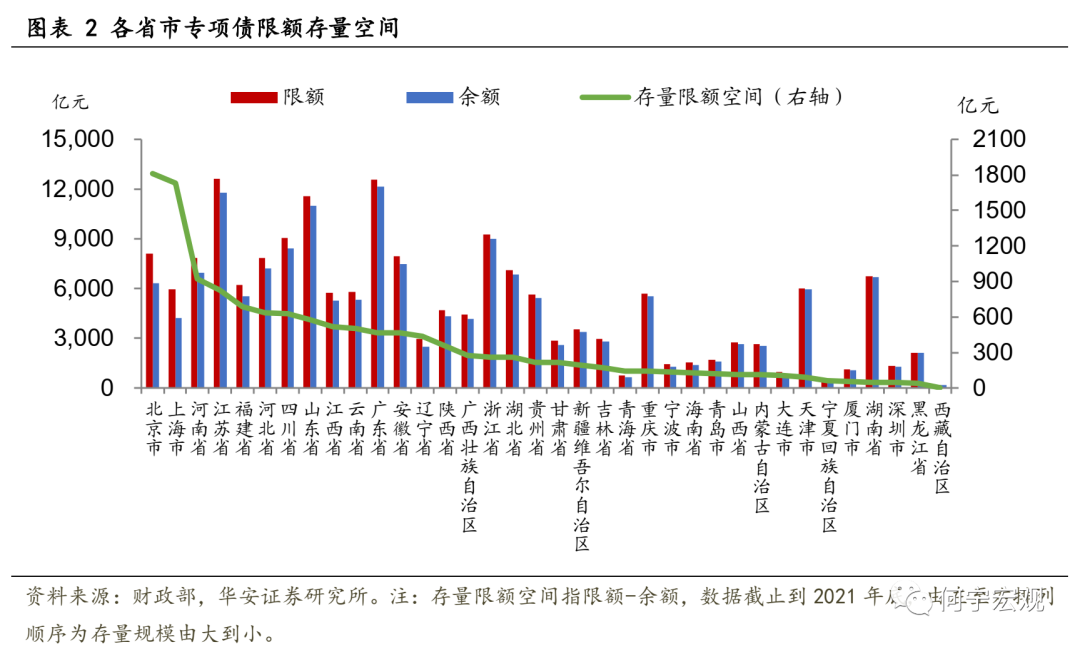 本文内容节选自华安证券研究所已发布报告:《一文读懂专项债限额使用:规模、流程以及投向》(发布时间:20220816),具体分析内容请详见报告。若因对报告的摘编等产生歧义,应以报告发布当日的完整内容为准。