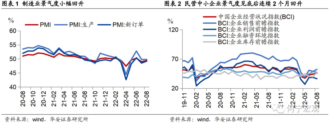 一、制造业:8月制造业景气度小幅回升但处荣枯线以下,呈现“需求景气度弱于供给、产品去库、成本小幅回落”的特征,提示“二季度疫情封控下物流供给主导物流指标”的逻辑可能生变;结构上,中游制造和下游消费产需恢复更好,大型、小型企业分化严重。后续政策还需在产需端持续发力,巩固经济修复趋势。